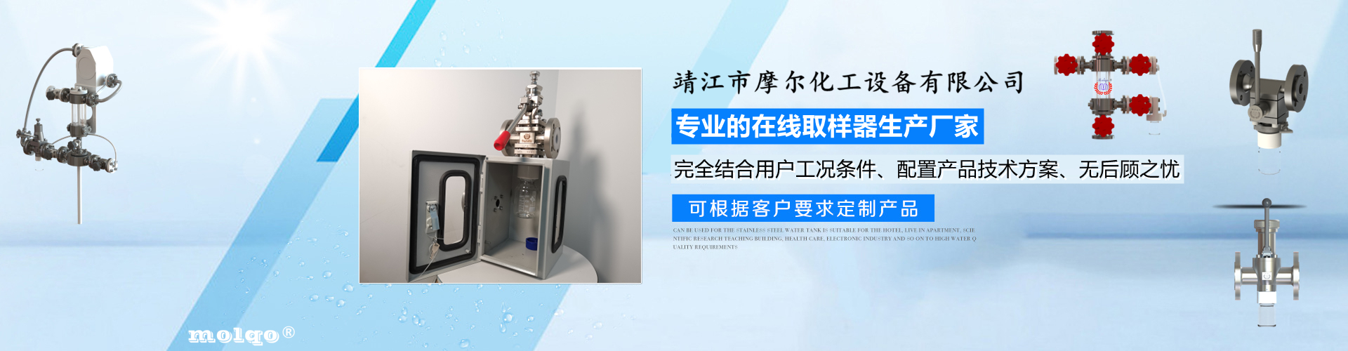 靖江市摩爾化工設(shè)備有限公司位于蘇中明珠——江蘇省靖江市城南工業(yè)園區(qū)東進(jìn)路北側(cè)天元艾爾瑞內(nèi),另有生產(chǎn)基地位于靖江市經(jīng)濟(jì)技術(shù)開發(fā)區(qū)新號路1號鼎電科技園內(nèi)。我公司由數(shù)名長期從事化工生產(chǎn)、氟塑襯里模具開發(fā)以及機(jī)械自控設(shè)備的專業(yè)人員共同合作成立,致力于提供客戶最優(yōu)的高效在線取樣、反應(yīng)及精餾分離設(shè)備,為客戶提供合理的設(shè)備選型方案,以幫助客戶提高綜合生產(chǎn)效率以及改善生產(chǎn)現(xiàn)場環(huán)境為目標(biāo)。 本公司主要制造及銷售的產(chǎn)品有:釜用在線取樣裝置,管道取樣閥,釜用清洗噴淋裝置、搪玻璃設(shè)備、GMP專用搪玻璃設(shè)備、氟塑襯里設(shè)備、攪拌器、釜用機(jī)械密封、氣動(dòng)閥門及搪玻璃管道、襯氟閥門管道、非標(biāo)不銹鋼容器,精餾塔塔器、片式冷凝器及PTFE密封件、鋯、鈦、鉭、鎳等加工件制品。我司是一家集研發(fā)銷售、設(shè)計(jì)咨詢服務(wù)于一體的專業(yè)···| 台州市 | 盈江县 | 连州市 | 名山县 | 南丹县 | 深水埗区 |
